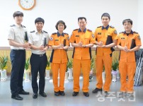 경북 상주소방서(서장 이주원)는 13일 신속 정확한 응급처치로 생명을 구하고 교통사고 후유증 최소화에 기여한 대원과 업무 유공대원들에게 트라우마세이버 인증서 등을 수여했다. 트라우마세이버 인증서 수상자는 소방위 김유리, 소방교 한우준, 최병찬 대원 등 모…