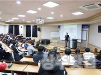 신동우 경북 상주상공회의소 회장이 취업을 앞둔 대학생들을 대상으로 특강했다. 특강은 상주상공회의소 취업지원센터 주관으로 19일 오후 경북대 상주캠퍼스 학생회관 세미나실에서 열렸다. 신 회장은 이날 '창업에서 글로벌기업으로 NANO 스토리'란 주제로 특강…