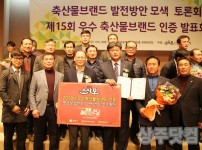 경북 상주축산농협(조합장 성영욱)의 '명실상감한우'가 제15회 우수 축산물브랜드 인증평가에서 12년 연속 우수축산물 브랜드 인증을 받았다. 시상식은 9일 서울 한국언론진흥재단에서 열렸다. 농림수산식품부가 후원하고 (사)소비자시민모임에서 주관한 '우수 축…