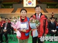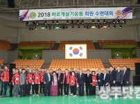 경북 상주실내체육관(신관)에서 바르게살기운동 상주시협의회 주최로 열린 '2018바르게살기운동 회원 수련대회'에서 강정대 회장이 정명자 씨(여.화남면)에게 열녀패를 시상하고 있다. 정 씨는 여유롭지 못한 생활 속에서도 남편을 섬기고 시부모를 봉양해 온 공로다.