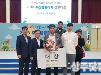 경북 상주축산농협(조합장 성영욱)이 8일 농협중앙회가 주최한 '2018 전국 축산물플라자 경연대회' 시상식에서 최우수농협인 '대상'을 수상했다. 이날 대회는 서비스 및 요리 2개 부문으로 본선에 22개의 농축협 (서비스 부문 11개, 요리부문 10개)이 참가해…