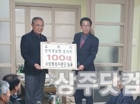 경북 상주소방서 김성환 소방행정자문단장이 27일 시내 한 식당에서 열린 소방행정자문단 간담회에서 김재훈 상주소방서장에게 소화기 및 단독경보형 감지기 100대를 전달하고 있다. 이날 전달된 소화기 등은 홀몸노인 등 화재 취약가구에 설치될 예정이다. 상주시에서 최근 5년…