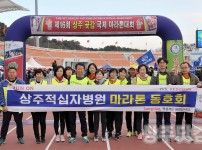 18일 경북 상주시민운동장에서 열린 '제16회 상주곶감 국제마라톤대회'에 참가한 상주적십자병원 마라톤 동호회원들이 출발 전 펼침막을 들고 포즈를 취하고 있다. 이날 대회에는 전국에서 4000여 명이 참가했다.(사진제공=상주적십자병원)