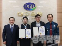 대구은행 직원 2명이 보이스피싱 피해 예방과 범인 검거에 기여한 공로로 경찰로부터 감사장을 받았다. 경북 상주경찰서(서장 장종근)는 14일 대구은행 상주지점을 방문해 보이스피싱 피해 자금의 인출책과 송금책 검거에 기여한 직원 2명에게 감사장을 수여했다. …