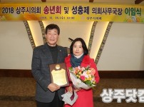 26일 조준섭 상주시의원이 부인 최성분 여사와 함께 수상 후 기념촬영을 하고 있다. 조준섭 경북 상주시의회 의원이 올해 '경북의정봉사대상'을 수상했다. 시상식은 26일 마리앙스웨딩홀에서 상주시의회 송년회에 앞서 열렸다. 조 의원은 남다른 열정과 모범…