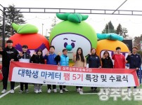 상주상무프로축구단의 대학생 마케터 팸 5기가 지난 21일 상주시민운동장 리셉션장에서 수료식을 끝으로 활동을 마무리했다. 지난 2월부터 10개월간 활동하며 원활한 홈경기 운영과 더불어 프로팀과 유소년팀 취재 및 사회공헌활동 등 이색 경험을 통해 프로축구단의 업…