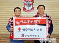 경북 상주적십자병(병원장 이상수.왼쪽)은 상주상무프로축구단과 지난해 이어 후원 협약을 맺었다고 7일 밝혔다. 후원 협약식은 지난 5일 상주상무프로축구단 대표이사실에서 열렸다. 두 기관은 앞으로 경기장 내 광고와 함께 지역민을 위한 사회공헌 활동을 공동 …