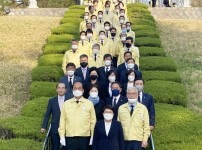 16일 오전 4.15 총선에서 경북 상주.문경 선거구에 당선된 미래통합당 임이자 국회의원 당선인과 상주시장 재선거에서 당선된 강영석 상주시장 당선인이 충혼탑 참배 후 기념촬영 하고 있다. 이날 참배에는 미래통합당 소속 시.도의원, 상주시청 공무원 등이 함께 했다…