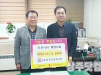 신종 코로나바이러스 감염증(코로나19) 극복을 위한 각계 각층 단체와 시민들의 성금이 잇따르고 있다. 경북 상주시 인터넷기자협회 회원 6개사(로컬상주,아시아뉴스통신,영남투데이,상주오늘신문,주간상주,채널영남)는 27일 오후 2시 상주시청을 방문해 성금 100만원…
