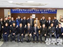경북 상주상공회의소(회장 신동우)는 최근 명실상감한우 대회의실에서 관내 학교 운동부 지원을 위한 상주상의 회원사 협약 기업과 학교 실무자간 간담회를 했다고 23일 밝혔다. 이날 간담회에는 학교와 기업 실무자 및 상주시체육회 관계자 40여명이 참석했다. …