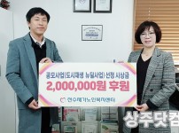 경북 상주시청 이동순 주무관(도시과 도시재생팀)이 지난 5일 관내 복지 사각지대에 있는 어려운 이웃들을 위해 써달라며 천수재가노인복지센터 설명수 대표에게 200만원을 기부하고 있다. 기부금은 올해 도시재생 뉴딜사업 선정으로 받은 시상금이다. 관내 취약계층에게 동절기 …