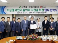 경북 상주시는 내년 상반기에 5억원을 들여 성동동 성동공원 1500㎡에 경북형 어린이 놀이터를 조성한다. 상주시는 25일 오후 상주시청에서 국제아동권리기관인 세이브 더 칠드런(Save the Children) 코리아 동부지부와 도심형 어린이 놀이터 조성사업에 …