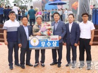 지난 3일 영천에서 열린 경북 한우경진대회 시상식 모습. 김용준 상주축협조합장과 이흥규 상주시한우협회장이 함께 기념촬영 하고 있다.(사진제공=상주시청) 경북 상주시는 영천시 영천강변공원에서 지난 3일 개최된 '2019 경북 한우경진대회'에서 상주 외남면 신라농…